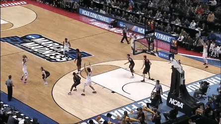 Walton held the ball near midcourt as his teammates, save Wagner, cleared out. As the shot clock hit ten seconds, Wagner shuffled over to set a screen to Walton's left. Before Wagner was set, Walton crossed the ball over and bolted to the right, gaining a step on defender Tony Hicks. Louisville's imposing back line was on full alert. Athletic 6'7" wing Deng Adel, who'd rejected a Muhammad-Ali Abdur-Rahkman attempt at the rim minutes earlier, rotated into the paint to challenge the shot. Mahmoud trailed, waiting to pounce.
